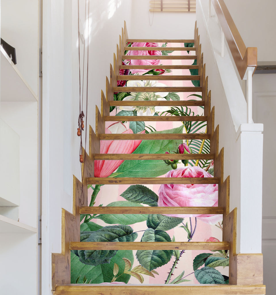 3D Pink Rose Flower 109200 Andrea Haase Stair Risers Sinsin