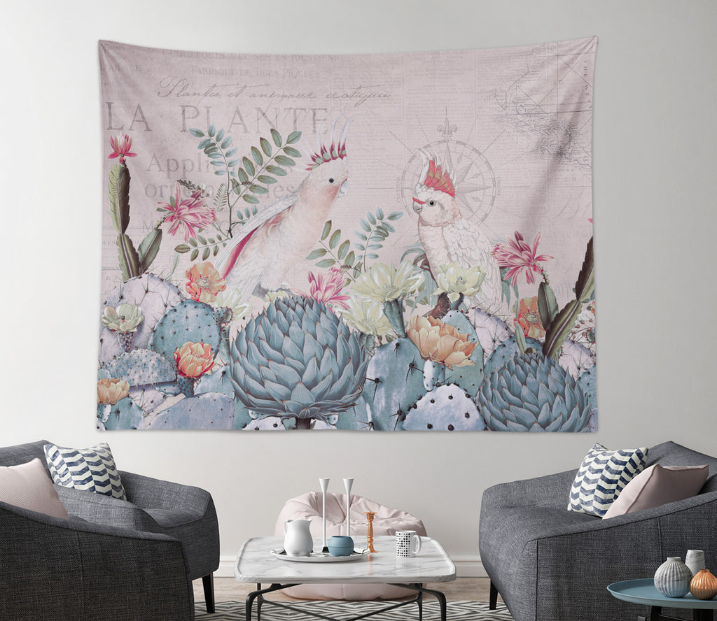 3D Cactus Plant Parrot 11840 Andrea haase Tapestry Hanging Cloth Hang
