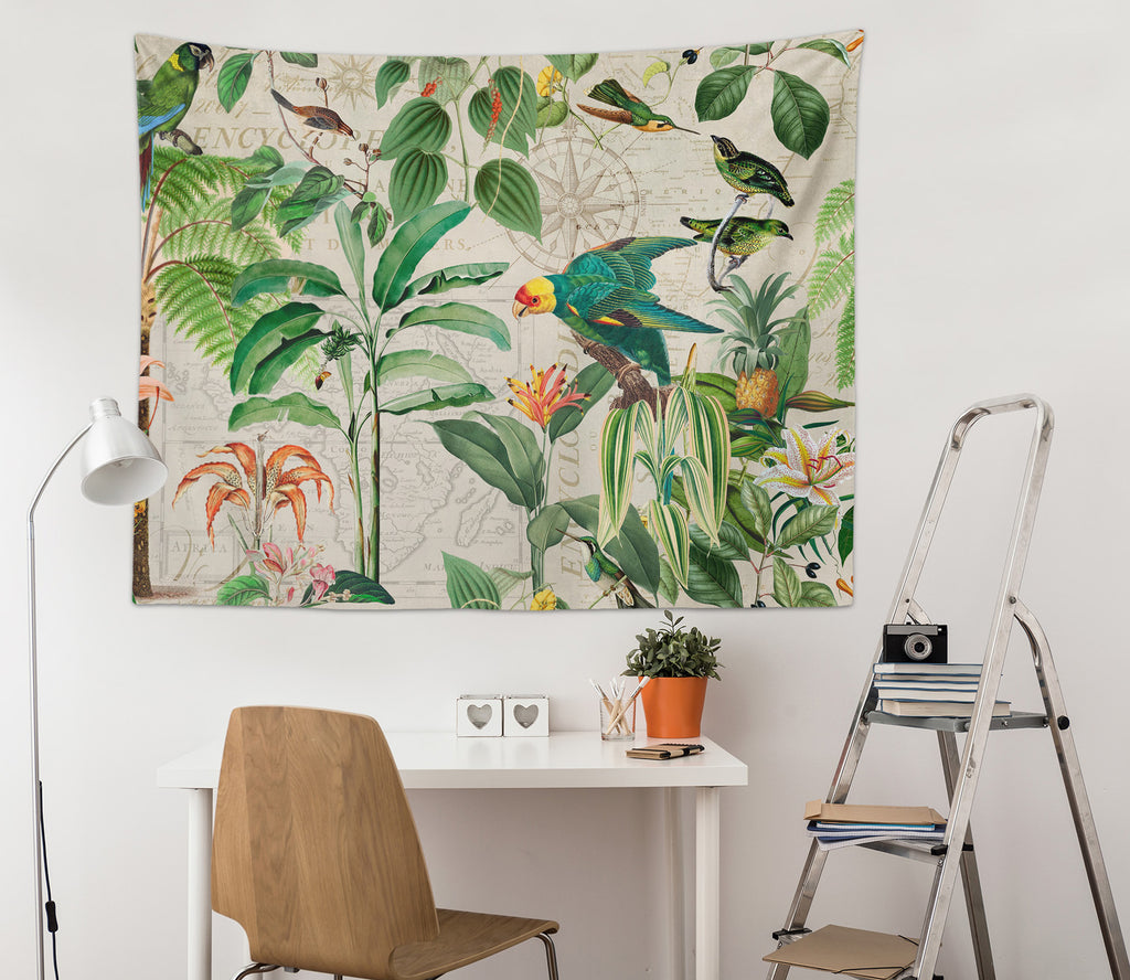 3D Green Leaf Bird Pineapple 11862 Andrea haase Tapestry Hanging Cloth Hang