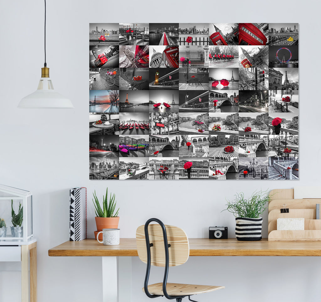 Make sure the wall surface is flat, clean and smooth. A clean and dry wall will help the adhesive from your wall mural to keep its stickiness. Put all panels on the ground, check the order. Measure and write down the dimensions of each panel. Mark vertical guidelines according to the panel's dimensions. Leave 2-3cm overlap between panels.