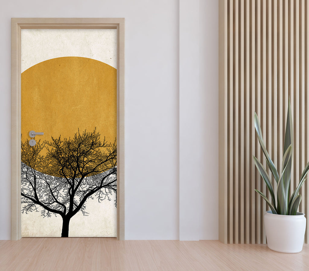 3D Yellow Sun Trees 10159 Boris Draschoff Door Mural Sinsin