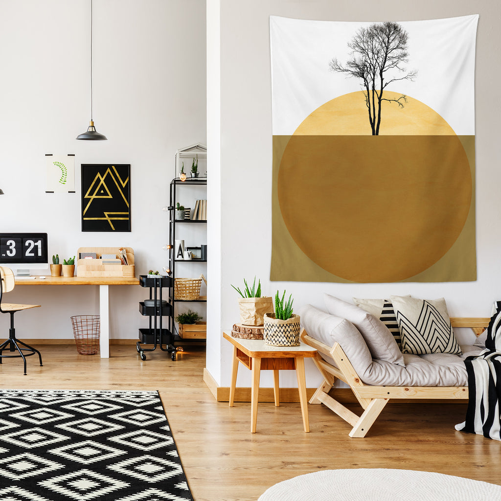 3D Yellow Moon Tree 875 Boris Draschoff Tapestry Hanging Cloth Hang Amy