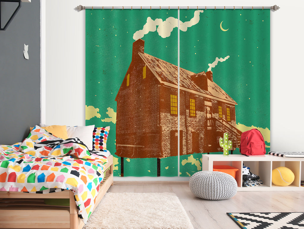 3D House Cooking Smoke 052 Showdeer Curtain Curtains Drapes Dai