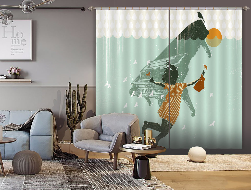 3D Swimming In Water 058 Showdeer Curtain Curtains Drapes Dai