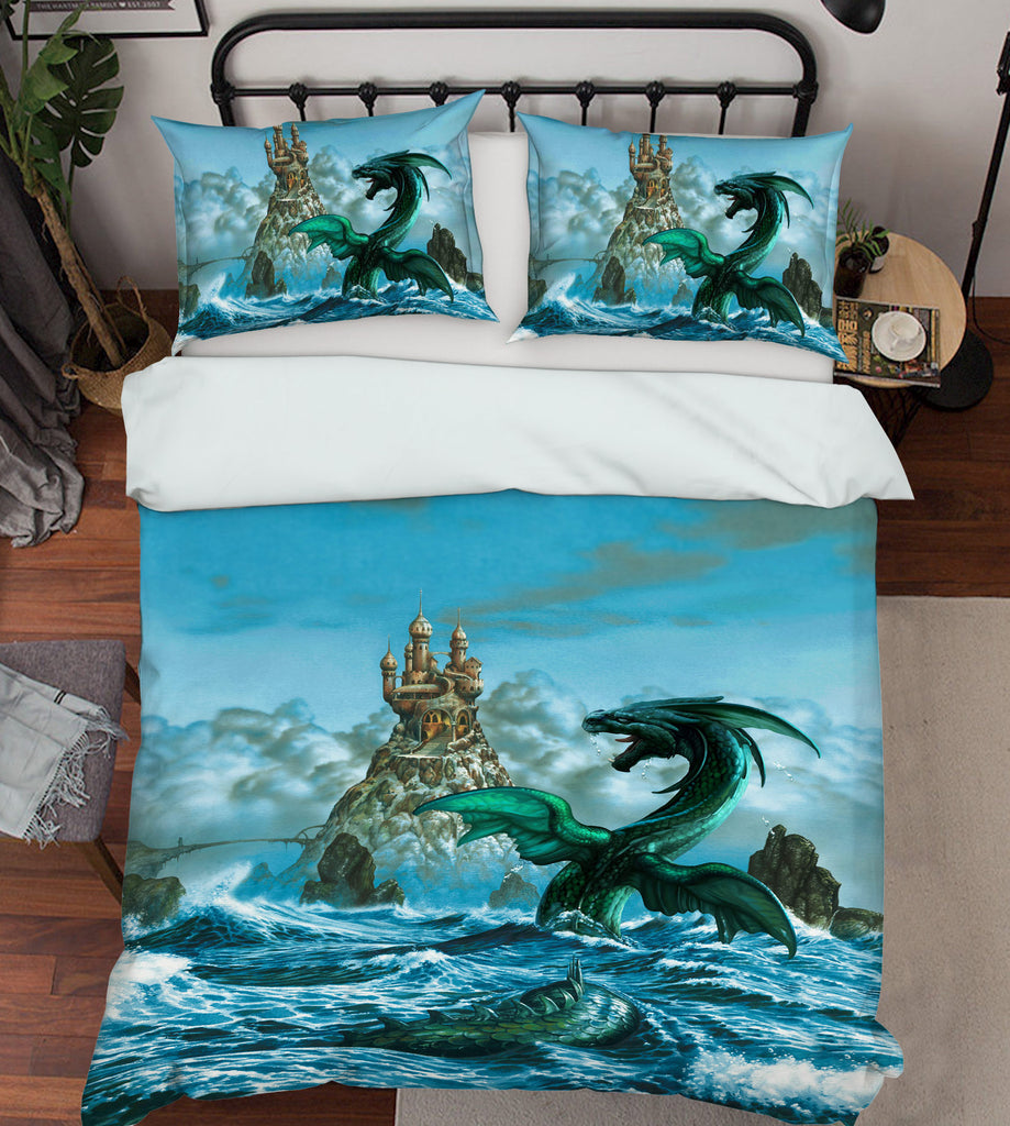 3D Sea Dragon Mountain Castle 6167 Ciruelo Bedding Bed Pillowcases Quilt