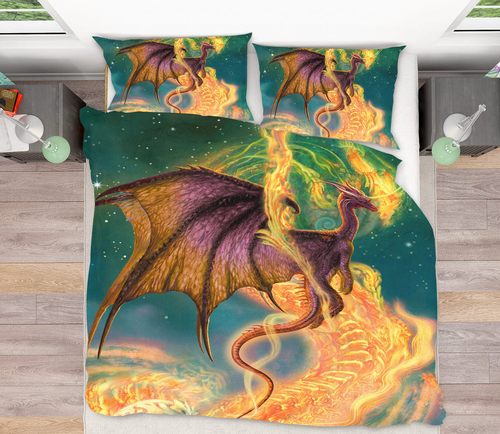 3D Starry Golden Pattern Dragon 7044 Ciruelo Bedding Bed Pillowcases Quilt