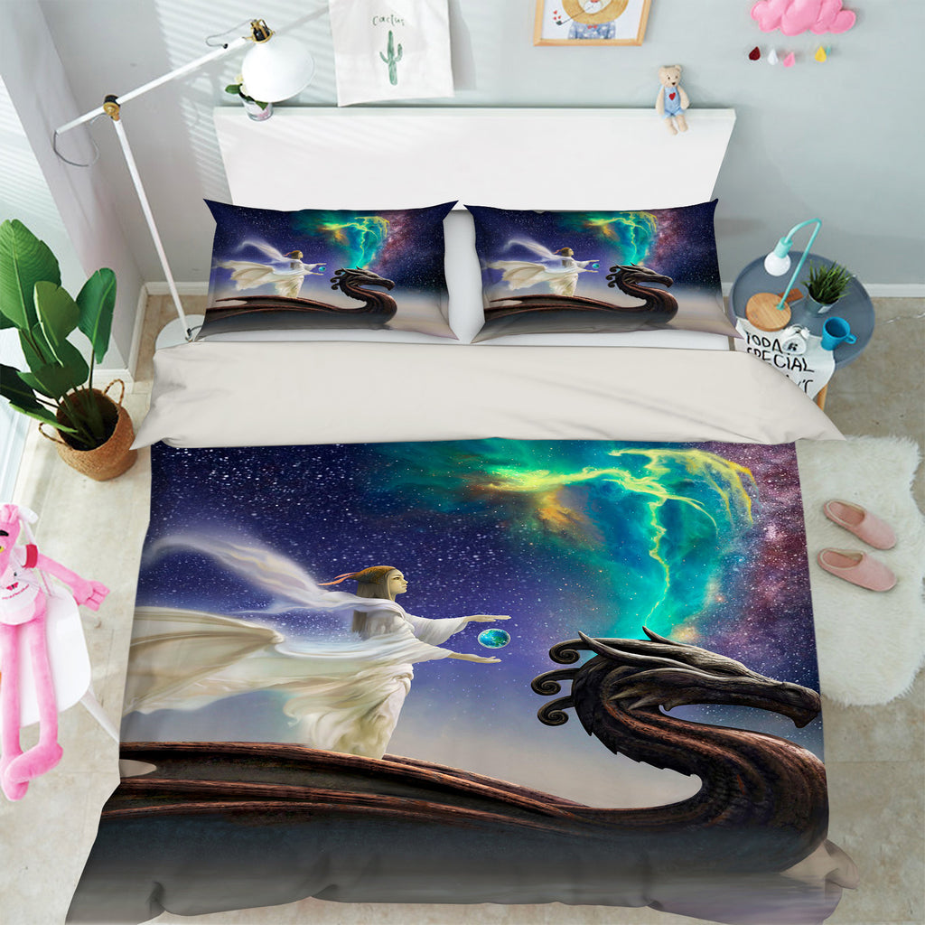 3D Starry Sky Dragon Woman 7040 Ciruelo Bedding Bed Pillowcases Quilt Sinsin