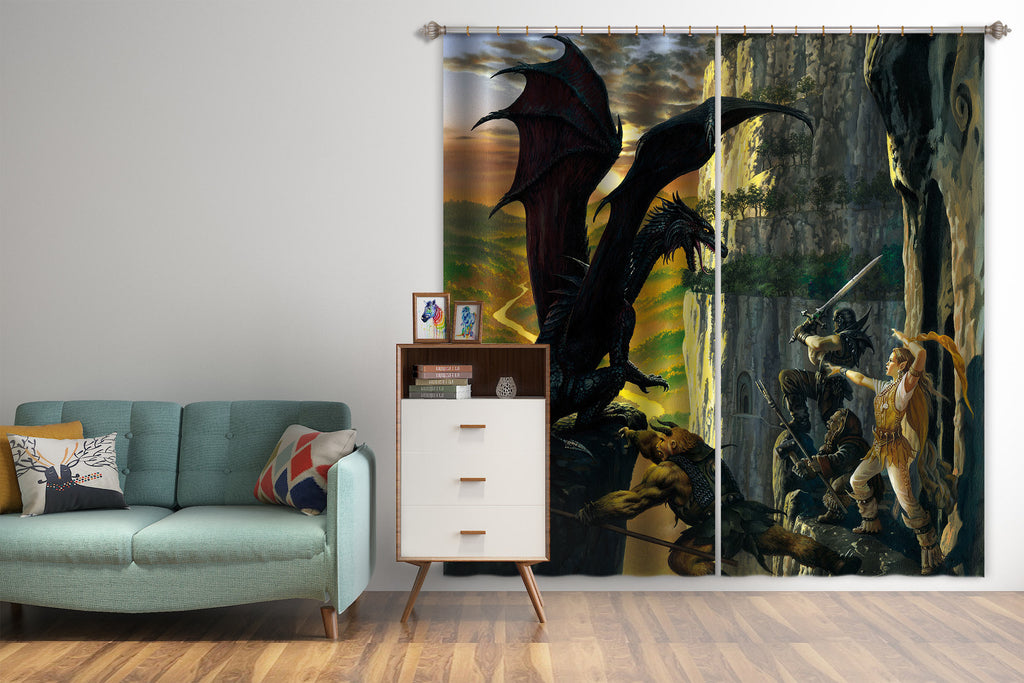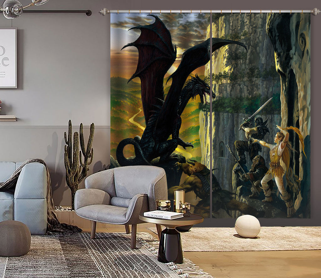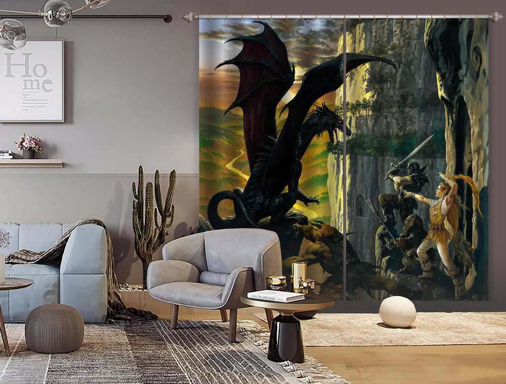3D Dragon Warrior 7190 Ciruelo Curtain Curtains Drapes Sinsin