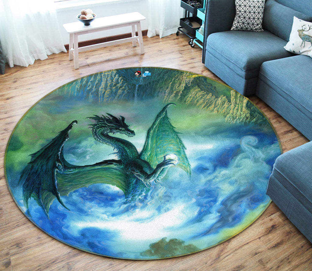 3D Blue Cloud Mist Dragon 6147 Ciruelo Rug Round Non Slip Rug Mat Sinsin