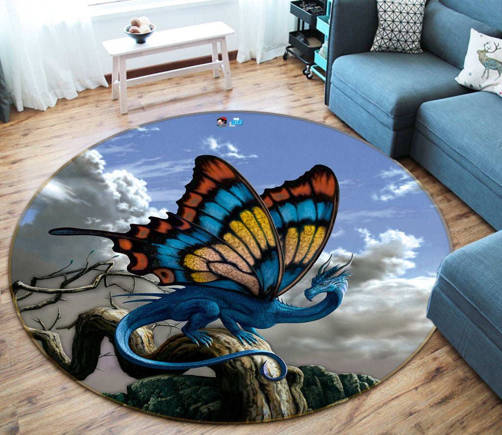 3D Butterfly Wings Blue Dragon 6158 Ciruelo Rug Round Non Slip Rug Mat Sinsin