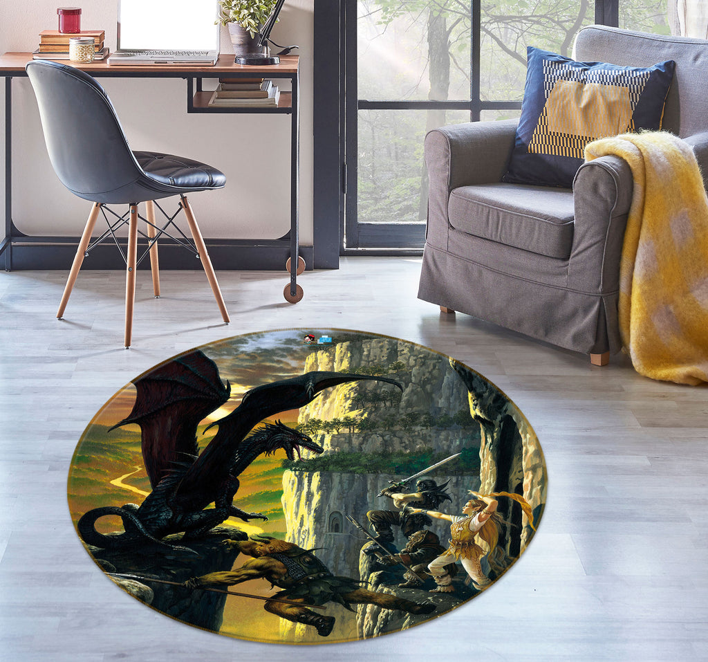 3D Dragon Warrior 6088 Ciruelo Rug Round Non Slip Rug Mat