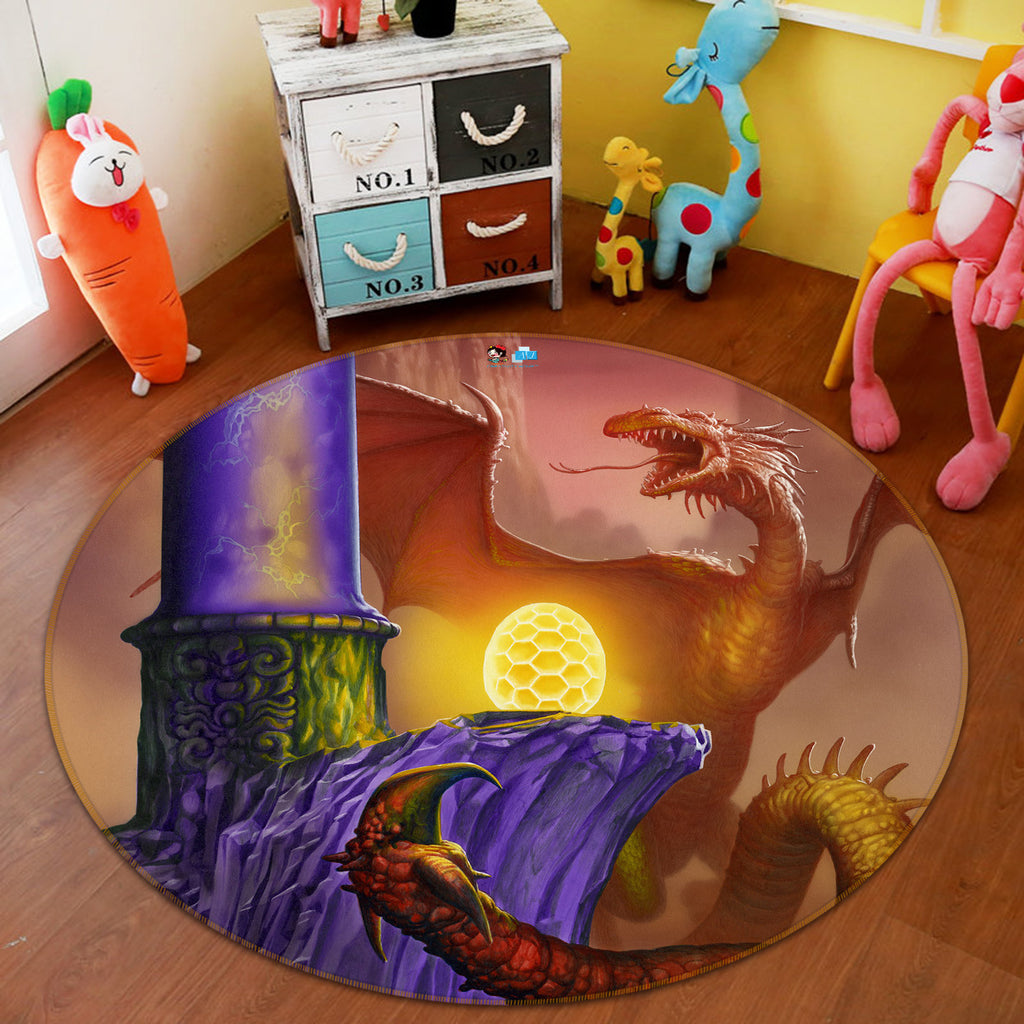 3D Red Dragon Golden Egg 6069 Ciruelo Rug Round Non Slip Rug Mat Sinsin