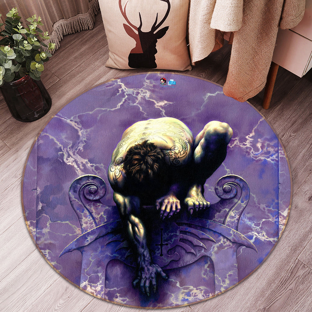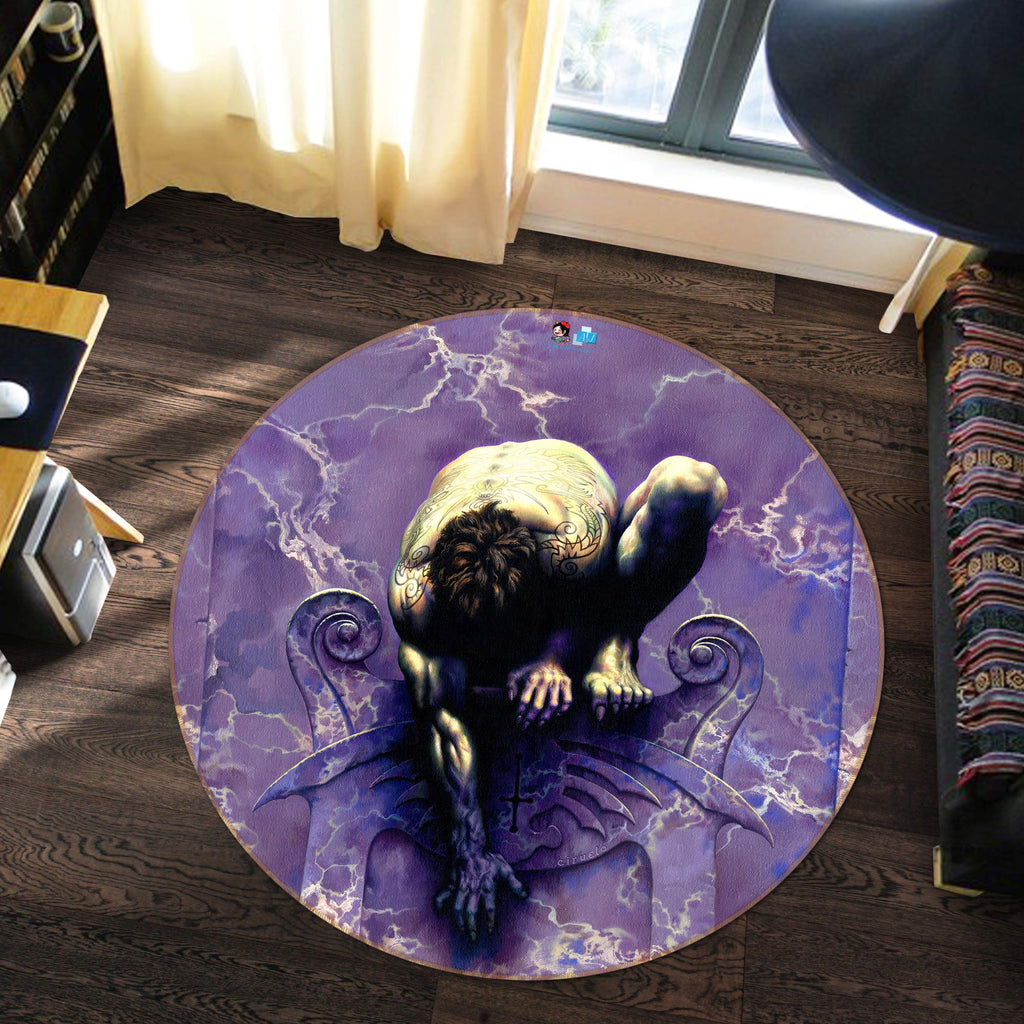 3D Squat Man 6086 Ciruelo Rug Round Non Slip Rug Mat Sinsin