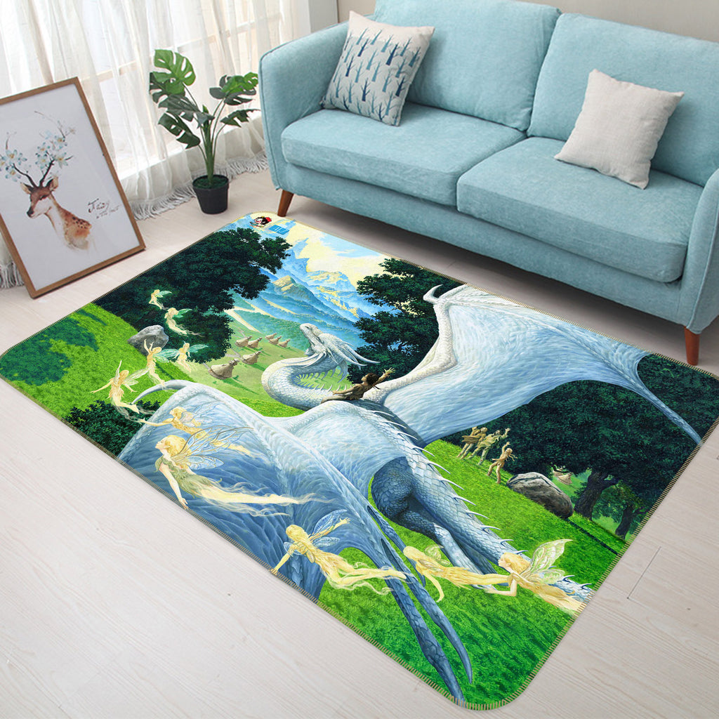 3D White Dragon Golden Elf Grassland 5156 Ciruelo Rug Non Slip Rug Mat Sinsin