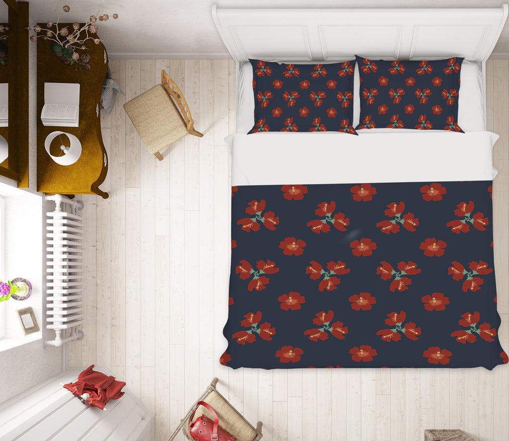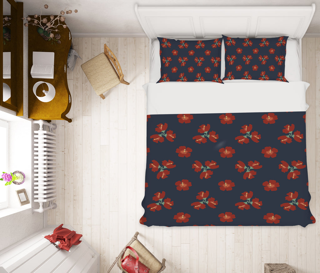 3D Red Flowers Pattern 98152 Kasumi Loffler Bedding Bed Pillowcases Quilt Sinsin