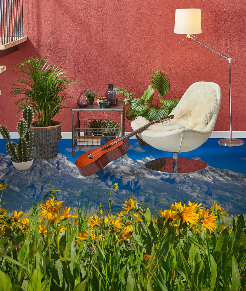 3D Snow Mountain Meadow Flowers 98188 Kathy Barefield Floor Mural Wallpaper Murals Self-Adhesive Removable Print Epoxy