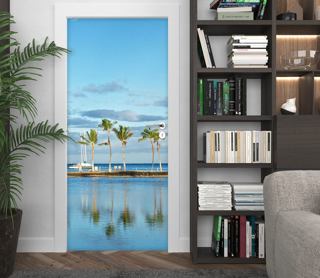3D Coconut Tree Sea Shadow 11121 Kathy Barefield Door Mural Sinsin