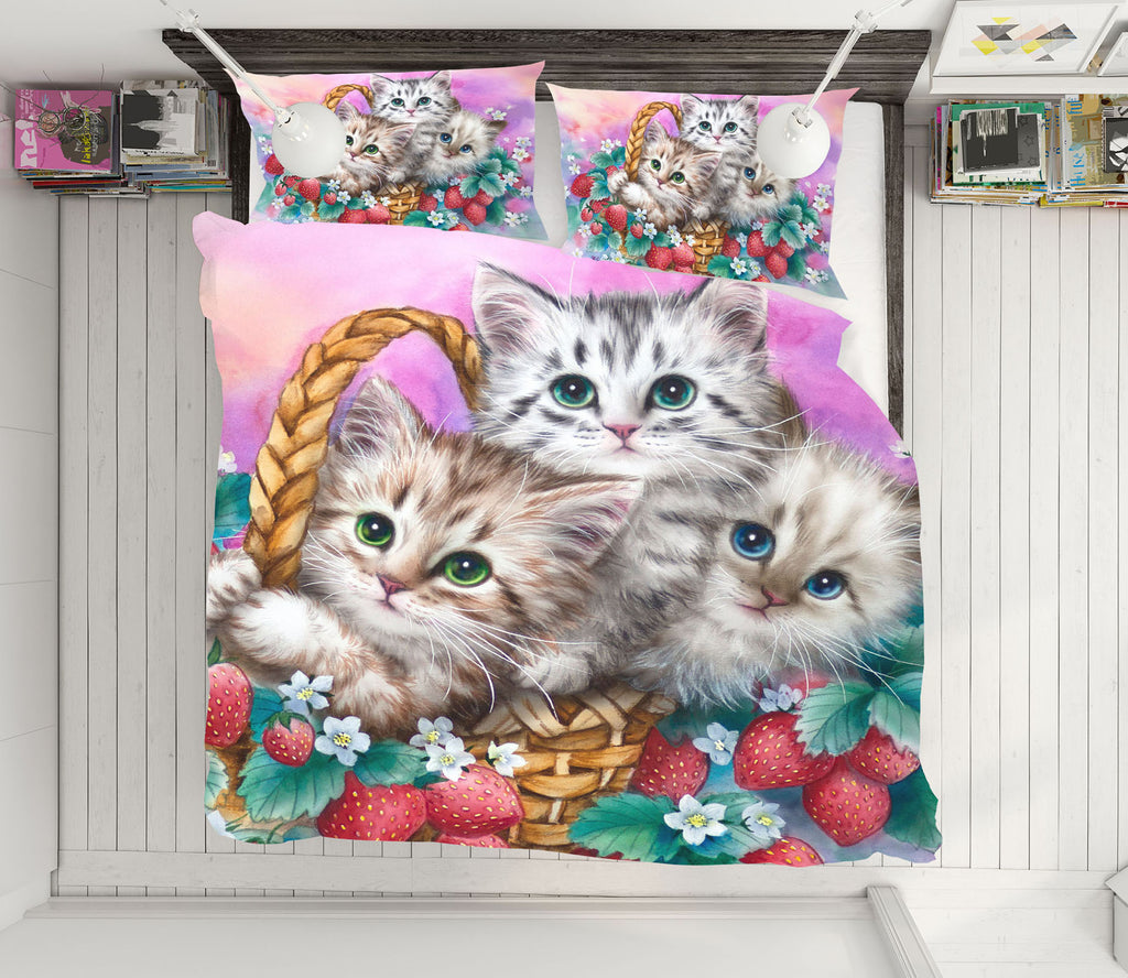 3D Strawberry Cat 5858 Kayomi Harai Bedding Bed Pillowcases Quilt Cover Duvet Cover Amy