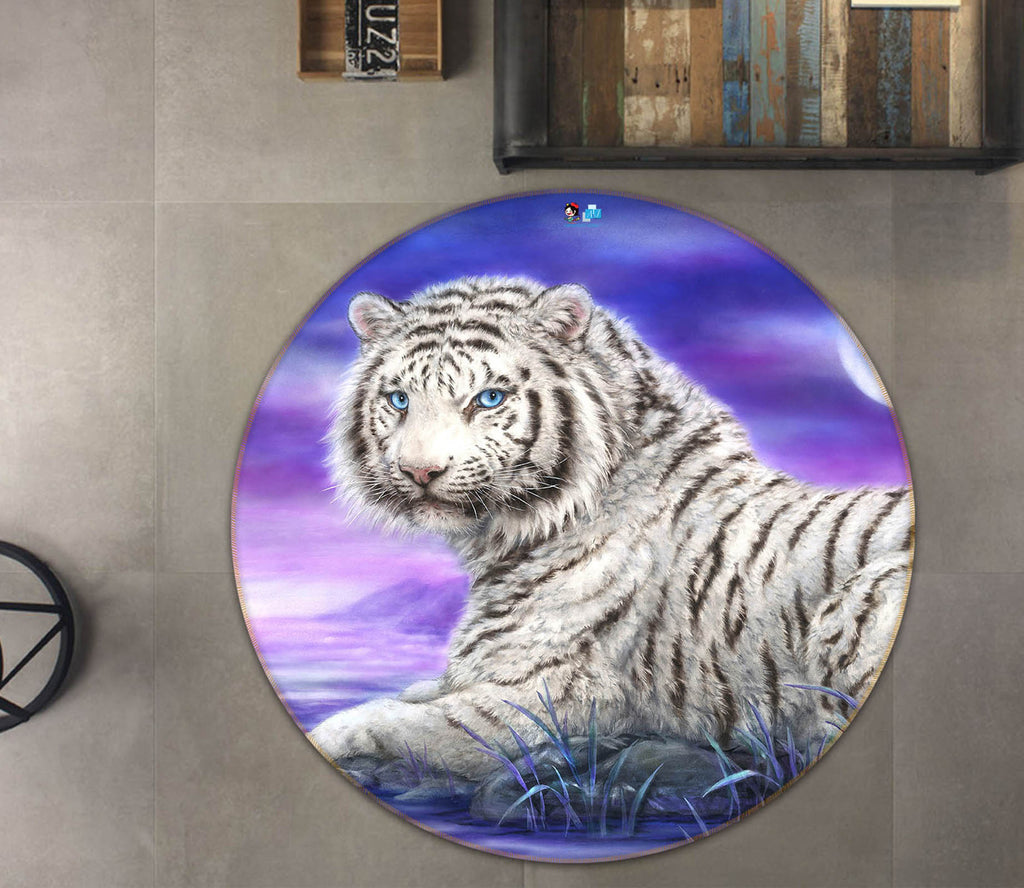 3D Tiger Moon 6037 Kayomi Harai Rug Round Non Slip Rug Mat Amy