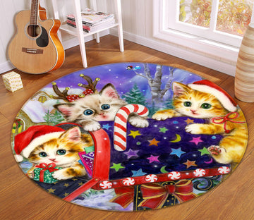 3D Christmas Cat 6019 Kayomi Harai Rug Round Non Slip Rug Mat