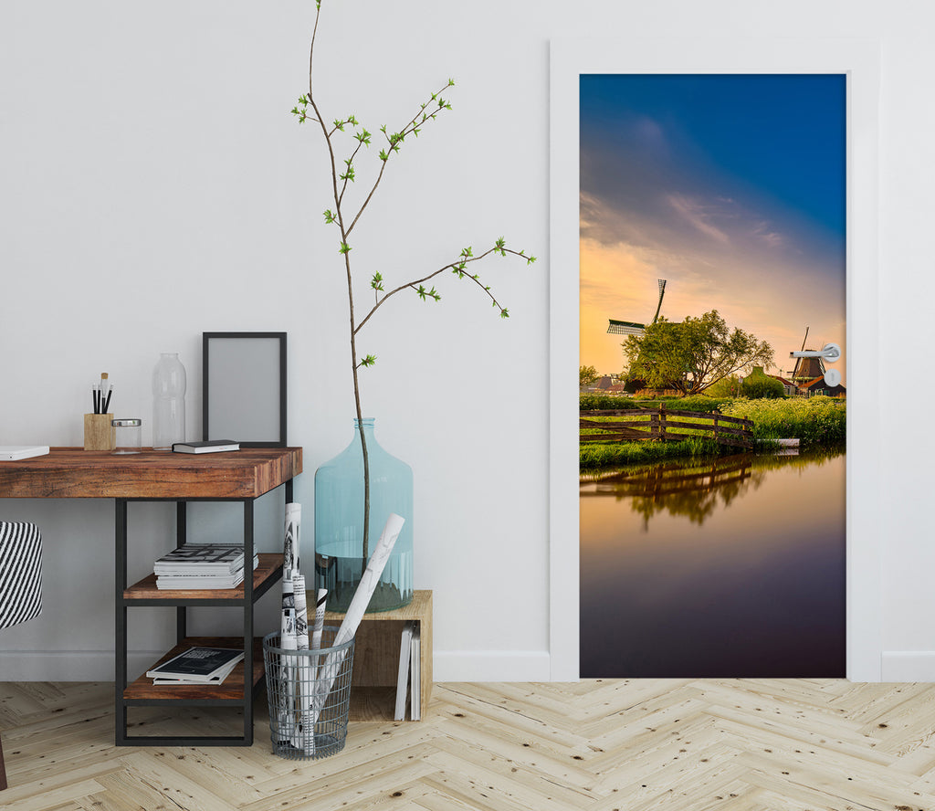 3D Riverside Grass Windmill 114101 Marco Carmassi Door Mural Sinsin