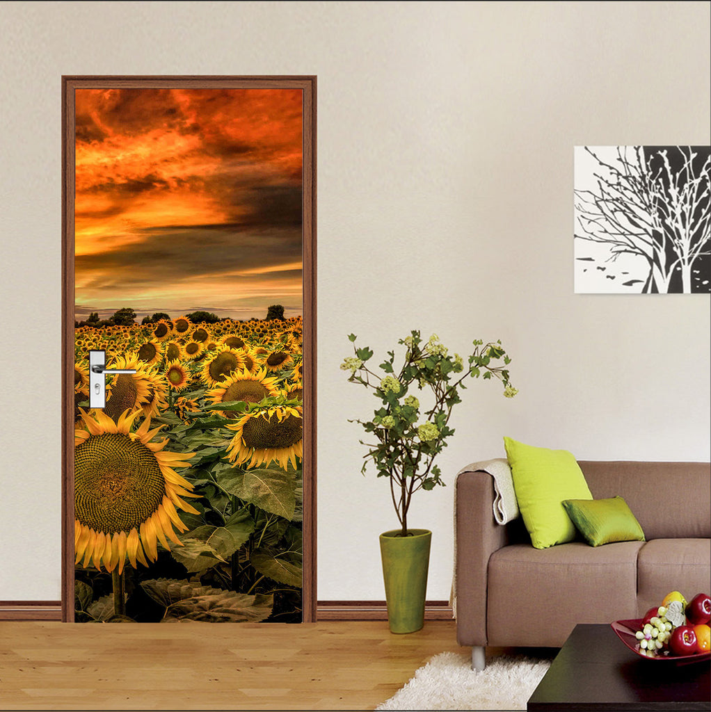 3D Sunset Sunflower Field 122139 Marco Carmassi Door Mural Sinsin