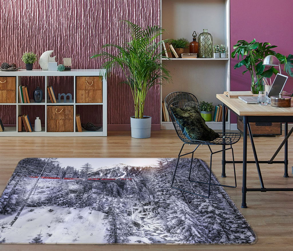 3D Heavy Snow Forest 1096 Marco Carmassi Rug Non Slip Rug Mat Dai