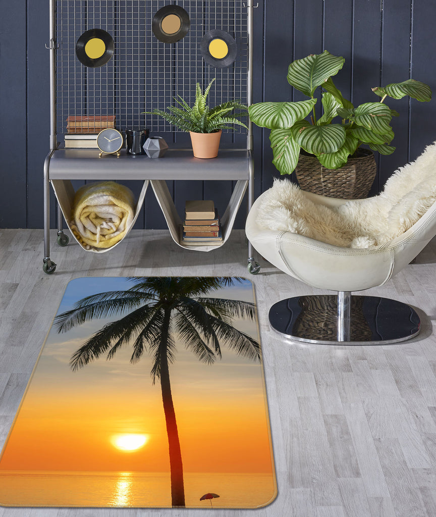 3D Sunset Coconut Tree 1192 Marco Carmassi Rug Non Slip Rug Mat Dai