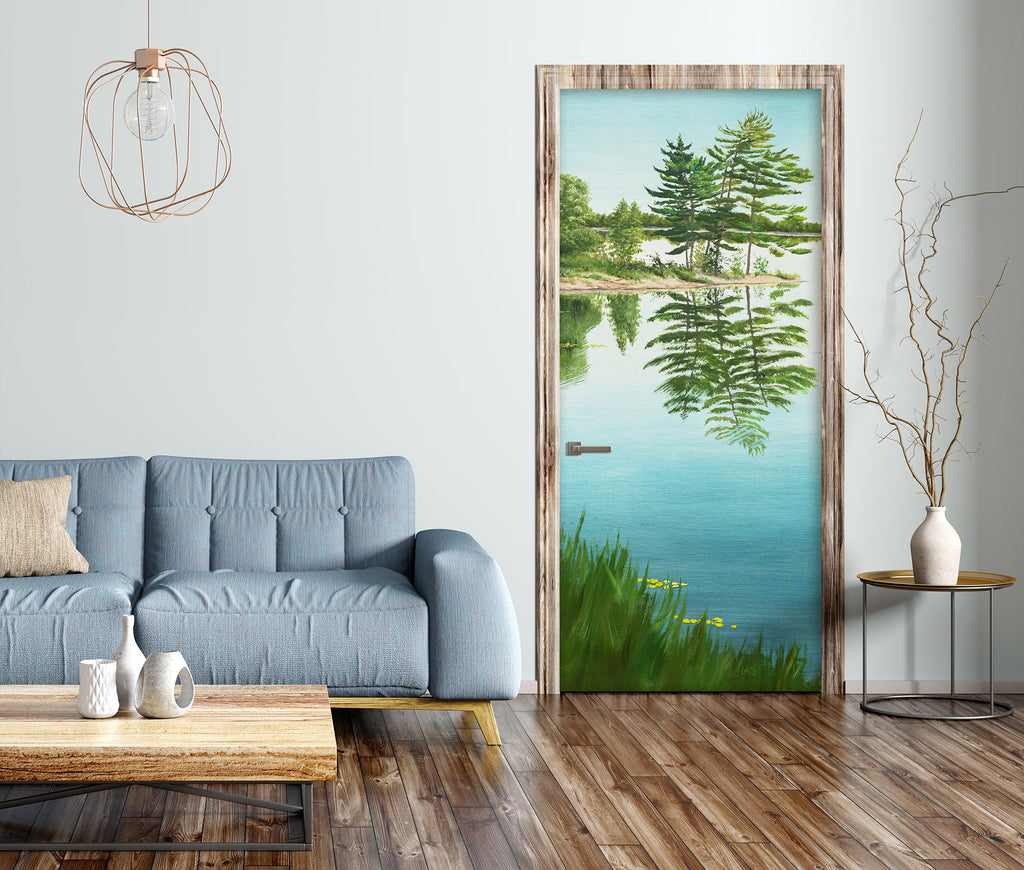 3D Lake Trees Grass 9434 Marina Zotova Door Mural Sinsin