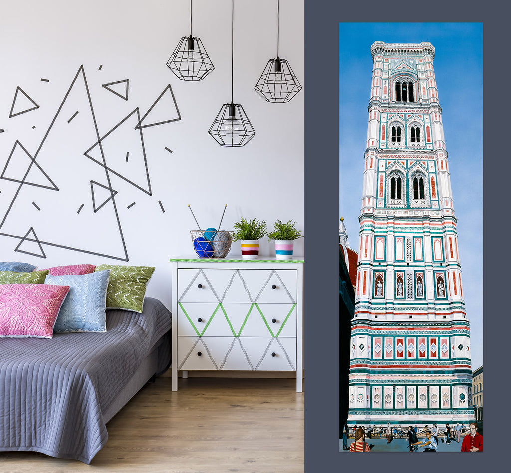 A clean and dry wall wil help the adhesive from your wall mural to keep its stickiness.Put all panels on the ground, check the order. Measure and write down the dimensions of each panel. Mark vertical guidelines according to the panel's dimensions. Leave 2cm overlap between panels.
