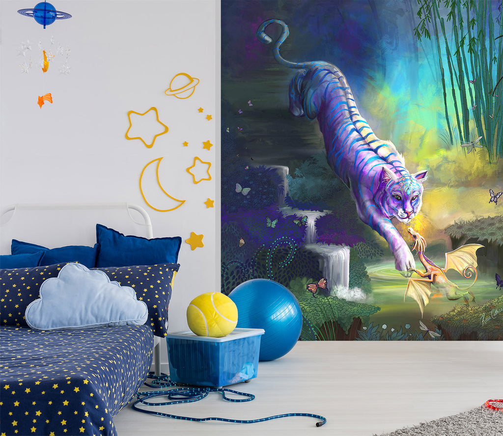 3D White Tiger 1416 Rose Catherine Khan Wall Mural Wall Murals Dai