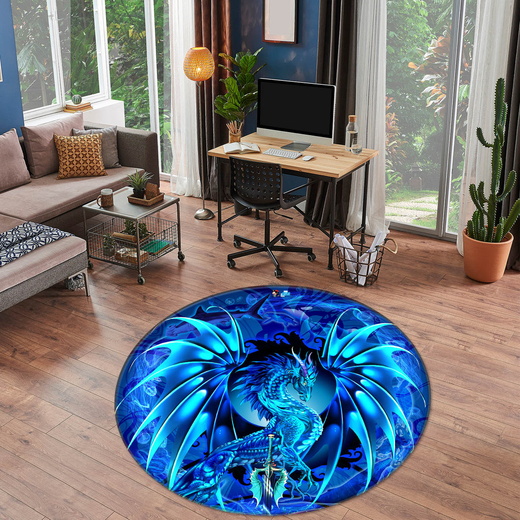 3D Blue Dragon 8375 Ruth Thompson Rug Round Non Slip Rug Mat