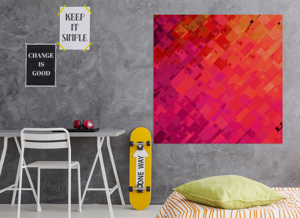 Make sure the wall surface is flat, clean and smooth. A clean and dry wall will help the adhesive from your wall mural to keep its stickiness. Put all panels on the ground, check the order. Measure and write down the dimensions of each panel. Mark vertical guidelines according to the panel's dimensions. Leave 2-3cm overlap between panels.