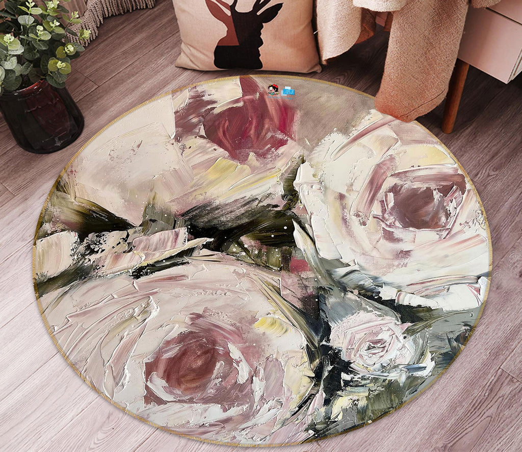 3D Pigment Rose 761 Skromova Marina Rug Round Non Slip Rug Mat