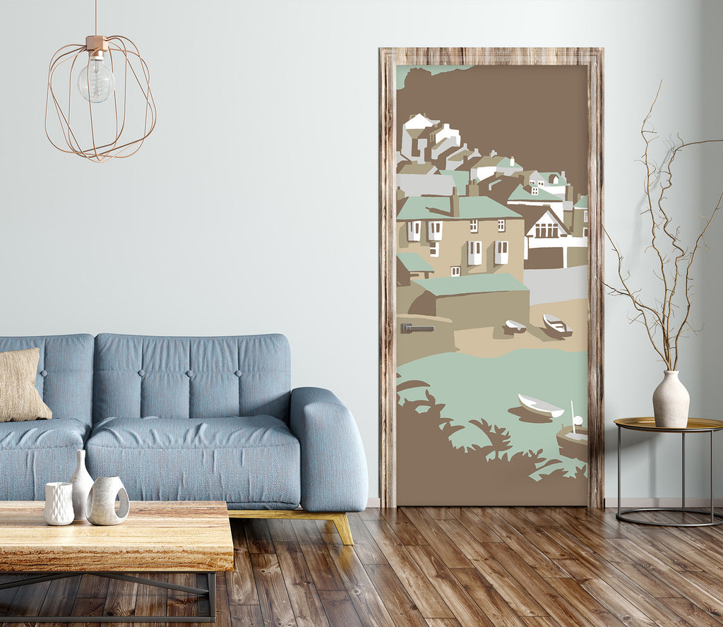 3D Seaside House Boat 9259 Steve Read Door Mural Sinsin