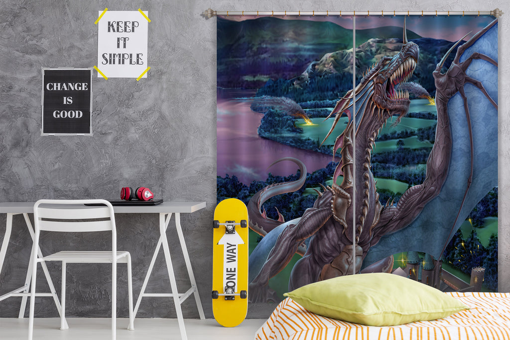 3D Big Dragon 5077 Tom Wood Curtain Curtains Drapes Sinsin