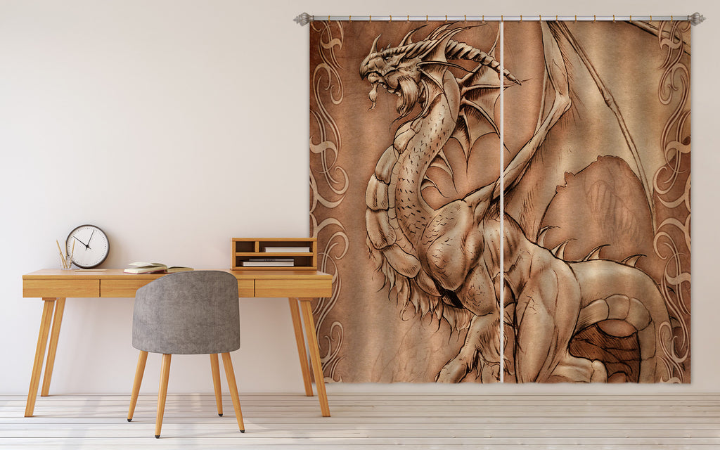3D Dragon Painting 5079 Tom Wood Curtain Curtains Drapes Sinsin