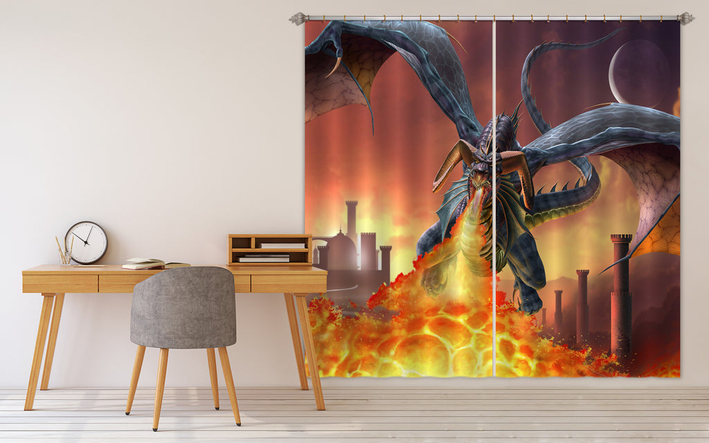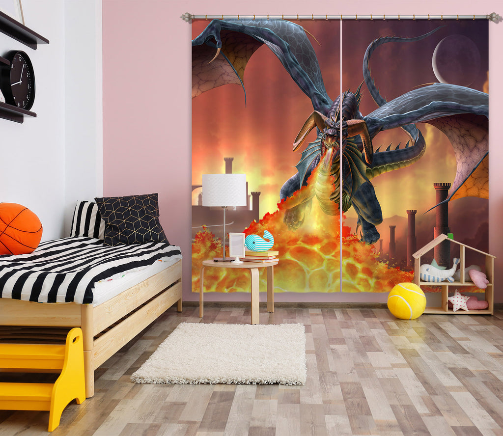3D Flame Flying Dragon 5071 Tom Wood Curtain Curtains Drapes Sinsin