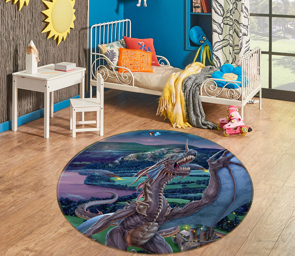 3D Big Dragon 4180 Tom Wood Rug Round Non Slip Rug Mat