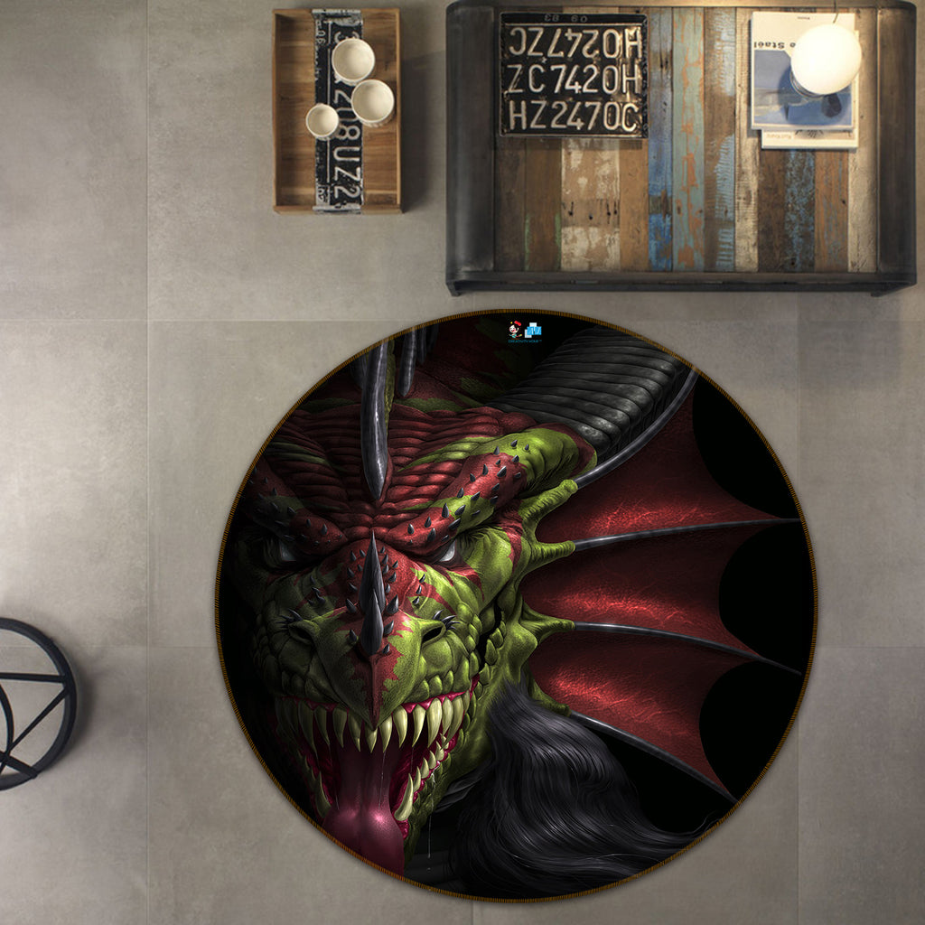 3D Dragon 4183 Tom Wood Rug Round Non Slip Rug Mat