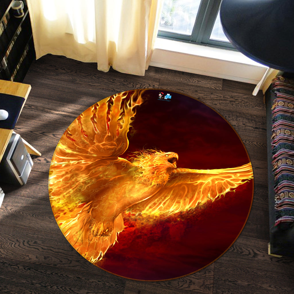 3D Flame Eagle 4168 Tom Wood Rug Round Non Slip Rug Mat