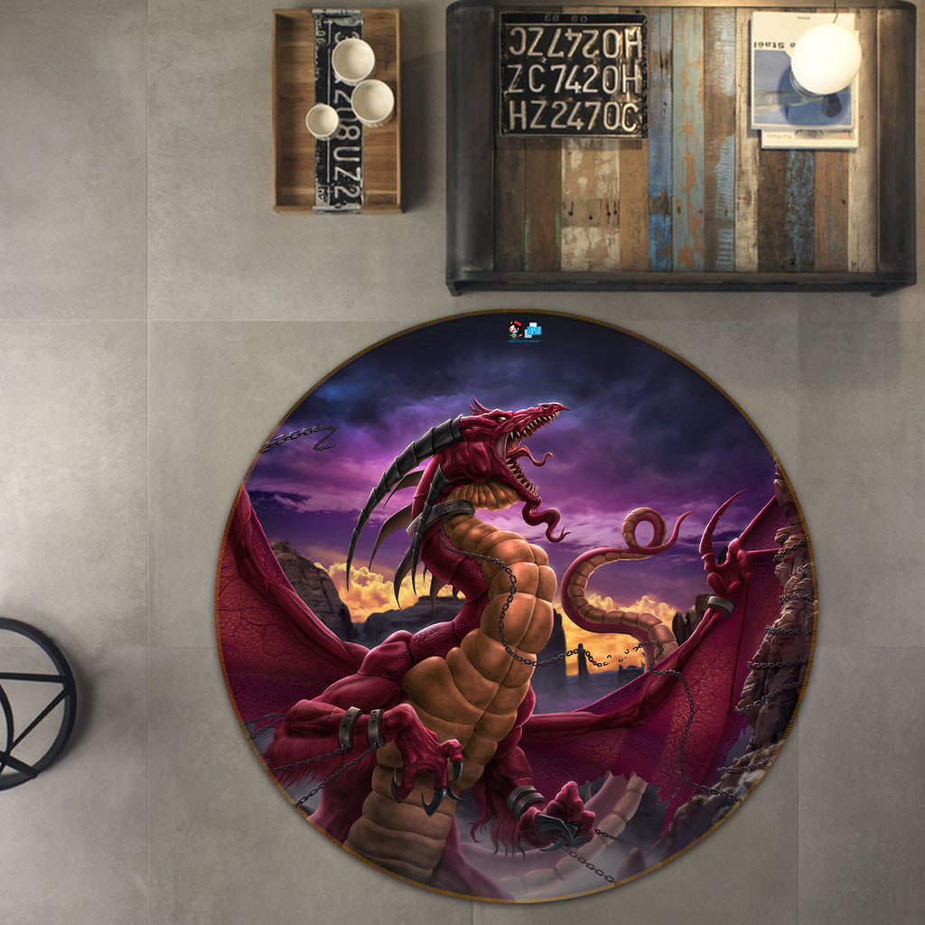 3D Red Purple Dragon 4160 Tom Wood Rug Round Non Slip Rug Mat Sinsin