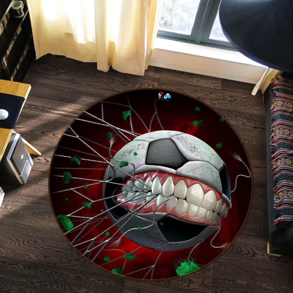 3D Teeth Football 4154 Tom Wood Rug Round Non Slip Rug Mat Sinsin
