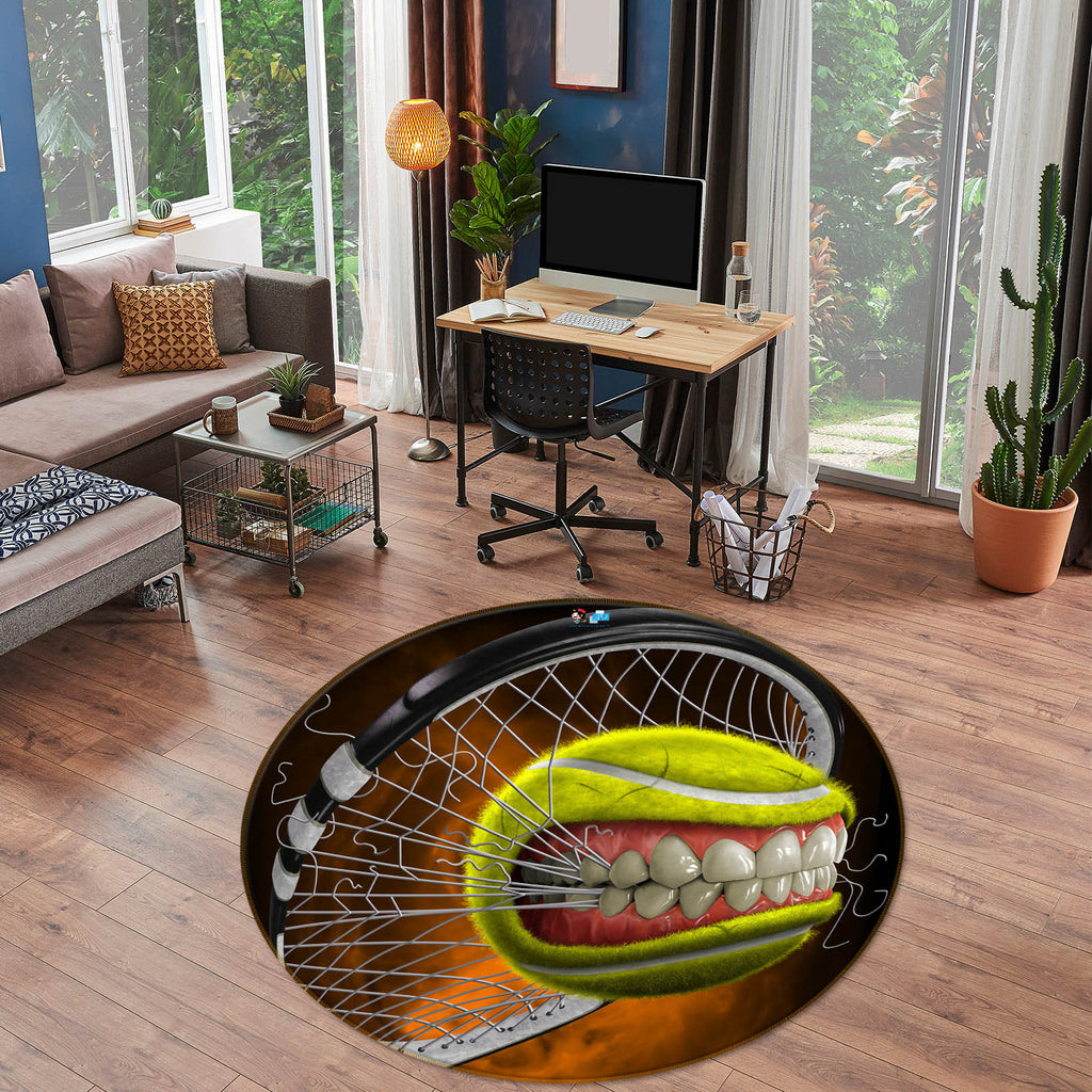 3D Teeth Tennis 4155 Tom Wood Rug Round Non Slip Rug Mat Sinsin