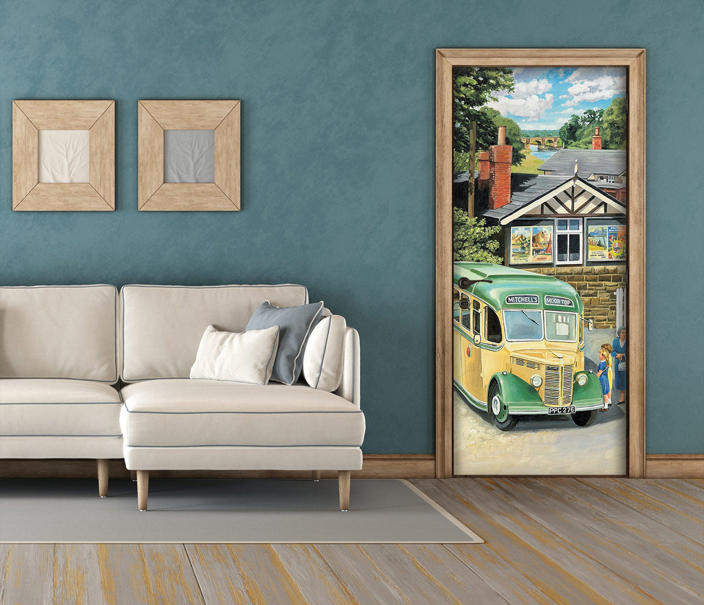 3D House Green Car 103124 Trevor Mitchell Door Mural Sinsin