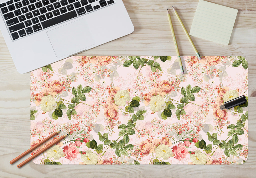 3D White Pink Rose Branch 120166 Uta Naumann Desk Mat Sinsin