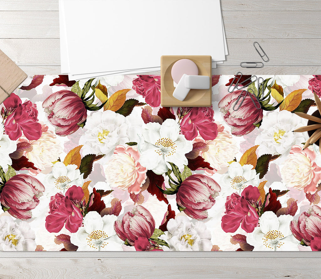 3D White Red Flower Pattern 120205 Uta Naumann Desk Mat Sinsin
