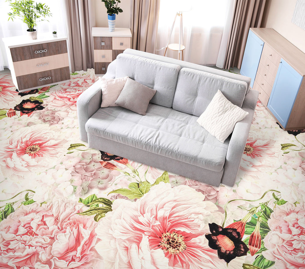 3D Pink Flowers 99209 Uta Naumann Floor Mural Wallpaper Murals Self-Adhesive Removable Print Epoxy