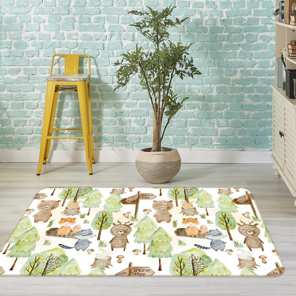 3D Fox Bear Tree 040 Uta Naumann Rug Non Slip Rug Mat Zoe