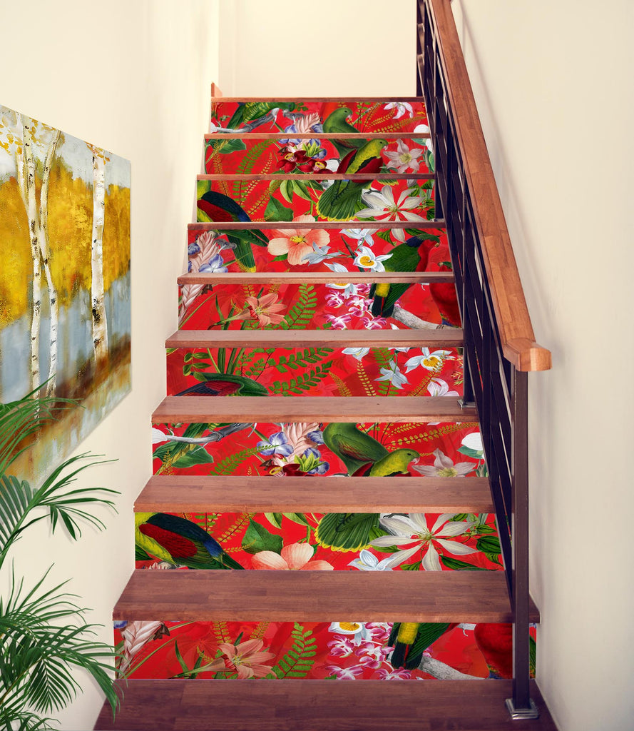 3D Green Bird Red Flowers 103225 Uta Naumann Stair Risers Sinsin